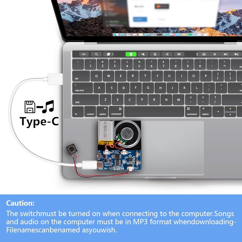 【128MB Storage Capacity】:Our sound module comes with a spacious 128MB memory, providing ample room for multiple songs or recordings. By connecting the module to a computer using a USB-Type-C cable, you can effortlessly add new audio files to the internal storage. It's your canvas to paint, allowing you to modify and update the stored audio content to your heart's content.