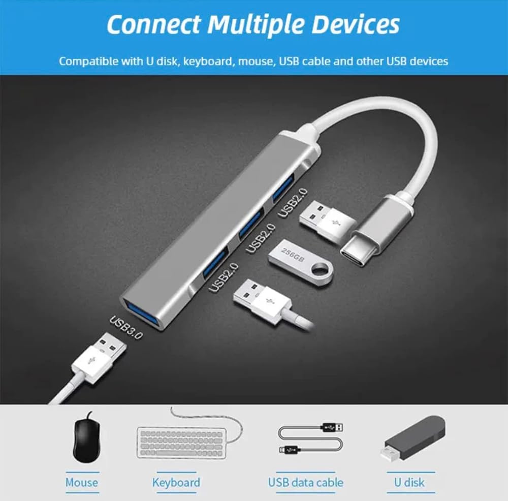 Combo 4 Port 3.0 USB Type C Hub Splitter