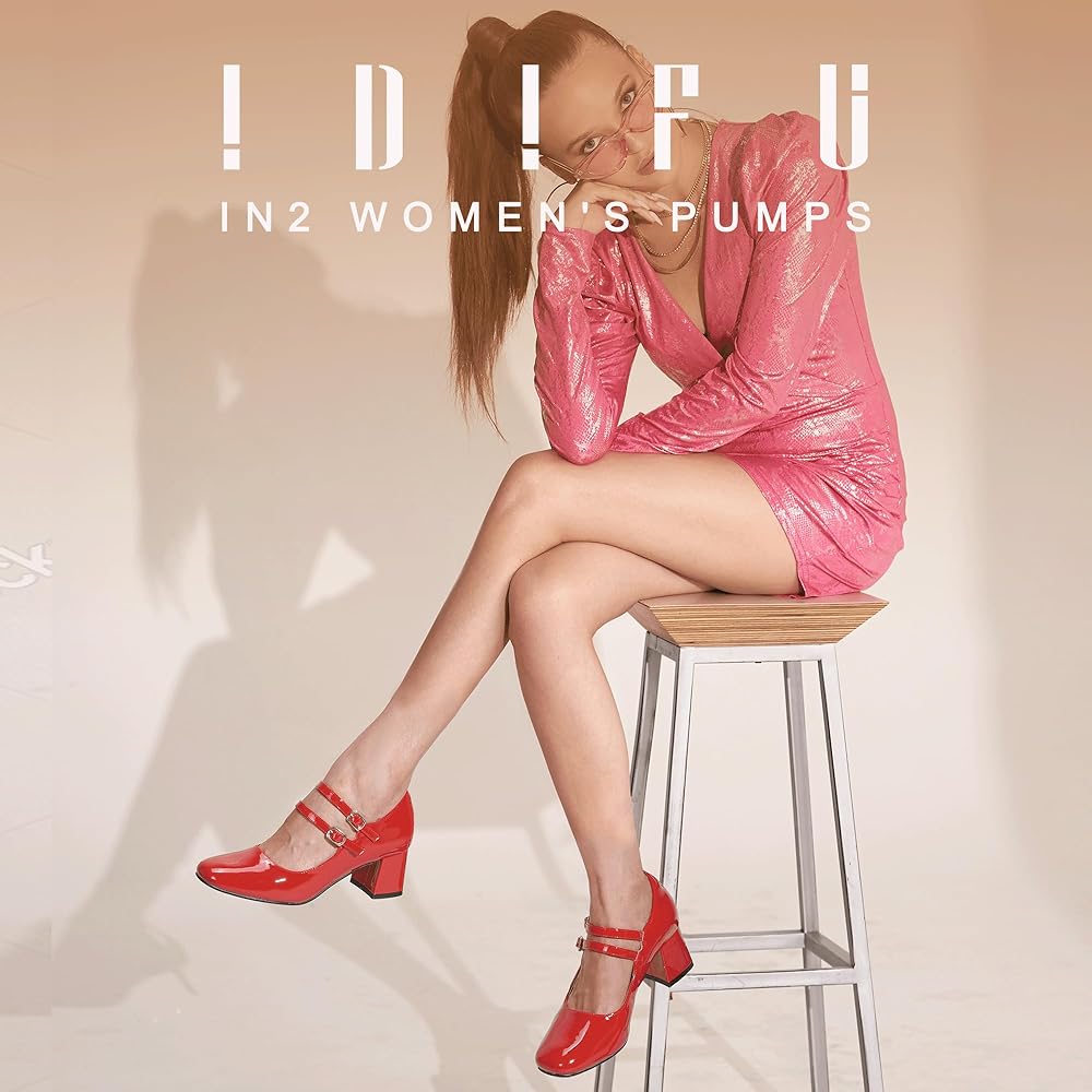 IDIFU IN2 Mary Jane Shoes Women Dress Shoes Women's Pumps Chunky Low Block Heels Square Closed Toe Strappy Wedding Business Bride Comfortable Short Graduation Two Strap Cute Vintage Heels Pumps Shoes