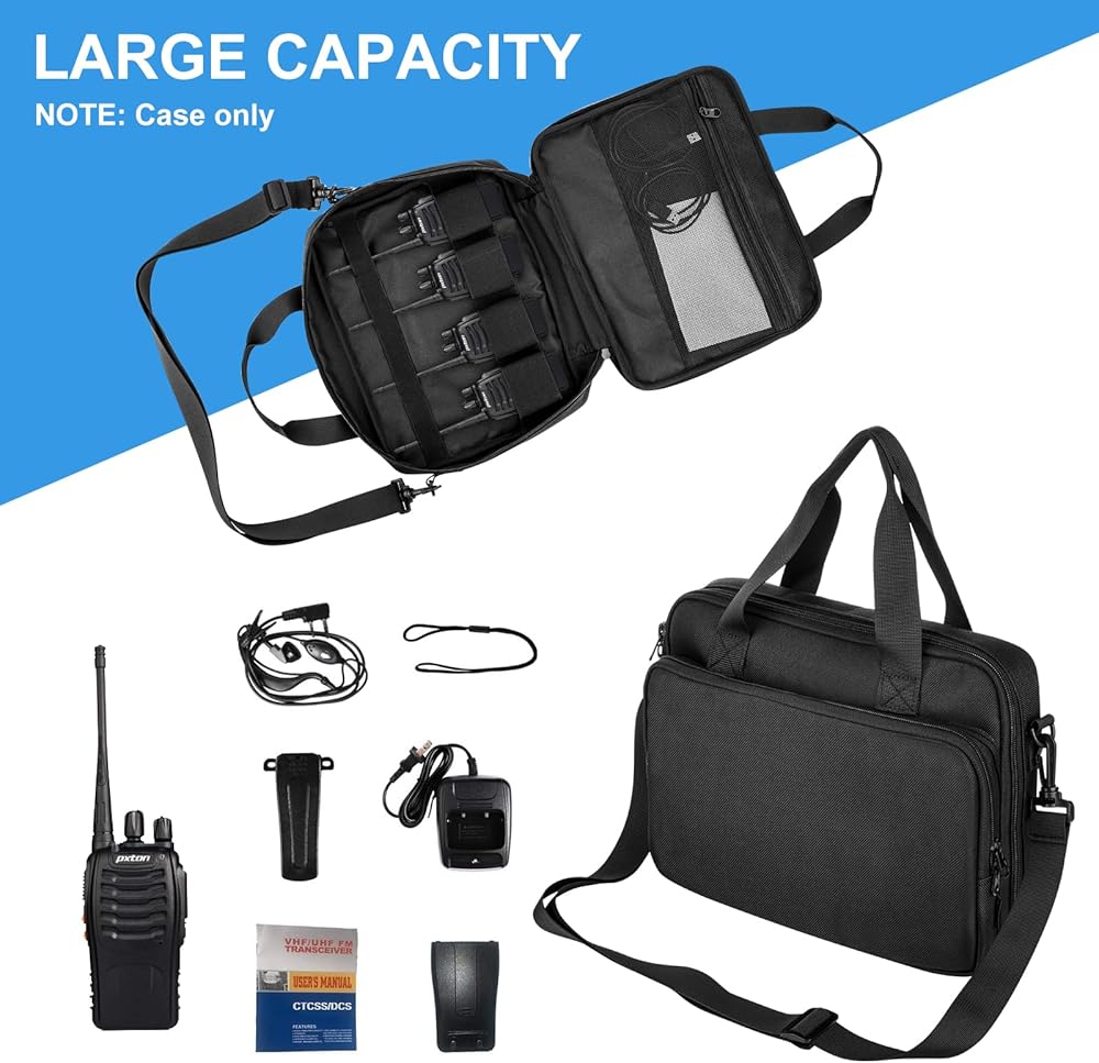 Homakover Large Walkie Talkie Case Bag with Shoulder Strap, Walkie Talkie Rechargeable Handheld Two Way Radios Carrying Box, Accommodate 4 Walkie Talkies and Accessories, Black (Bag Only)