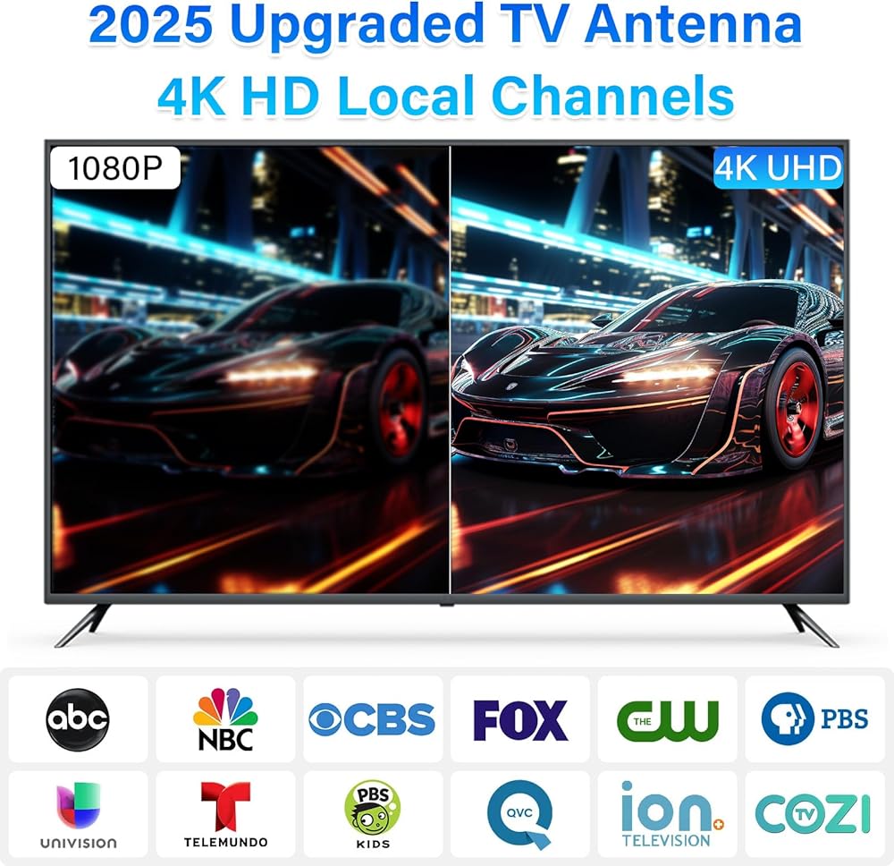 📺【Enjoy Clear 4K HD channels】Our smart tv antenna uses an intelligent IC chip, equipped with the latest generation of signal amplification technology, the picture quality is improved by 80%. The new technology filters out cellular and FM signals that makes high definition crystal pictures are available easily without extra power source required. It supports 720p, 1080i, 1080p, 4K signals.
