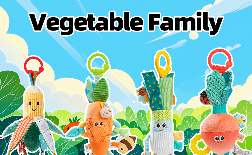 Jollybaby Hanging Rattle Toys for Parm & Stroller, Vegetables Plush Crib Bed Travel Activity Ring Bell with Crinkle, Squeaky & Teether for Infant Newborn Baby Boys Girls 0 3 6 9 12 Months(Corn)