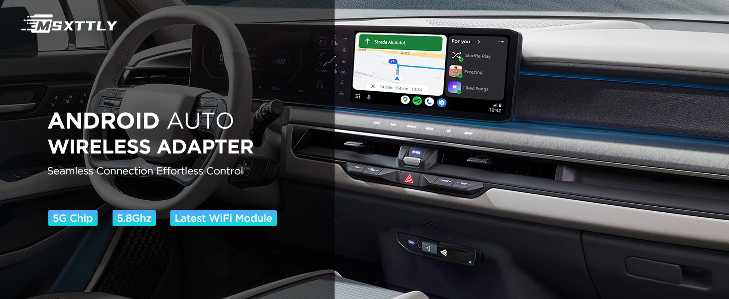 🚗【Fast & Stable Connection】The MSXTTLY adapter utilizes a 5G chip, groundbreaking 5.8Ghz WiFi module and 5.8 Bluetooth for a fast, solid connection that automatically connects in 5-15 seconds for the ultimate sensory experience of fast transmission. Allows you to enjoy all the features of navigation, music, voice assistant and phone calls without disrupting in-car operations.