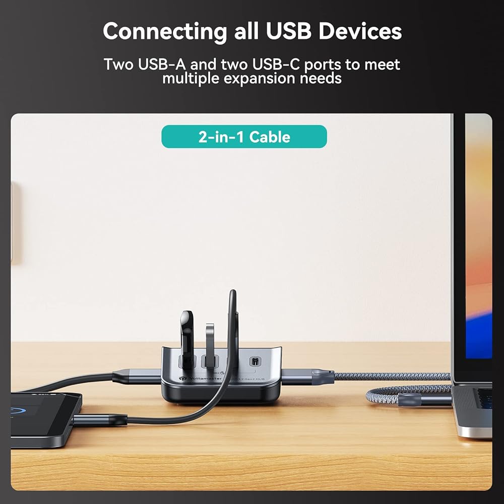 Yottamaster USB 3.2 Hub 10Gbps, USB C Splitter with 2 USB C 3.2 and 2 USB A 3.2 Ports, Triangle Desktop USB Hub with 1.64ft Cable for PC, Laptop (Not Support Charging)