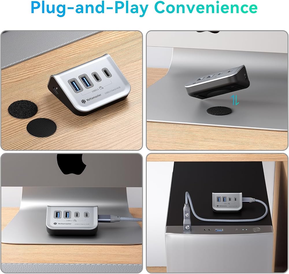 【Ergonomic 34° Slope Design】The powered usb hub incorporates a 34-degree ergonomic slope design, enhancing convenience when it comes to plugging and unplugging. You can conveniently stick it to your PC or desktop, making it easily accessible for seamless use.