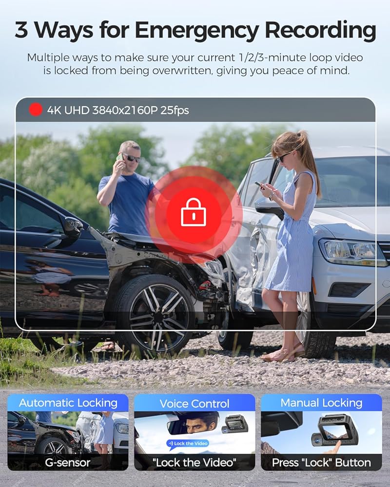 3 Channel Dash Cam: 1. Front: 5K(5120*2880@25fps); 2. Front and rear: 4K+1080P; 3. Front and inside: 4K+1080P; 4. Front and rear inside: 4K+1080P+1080P.