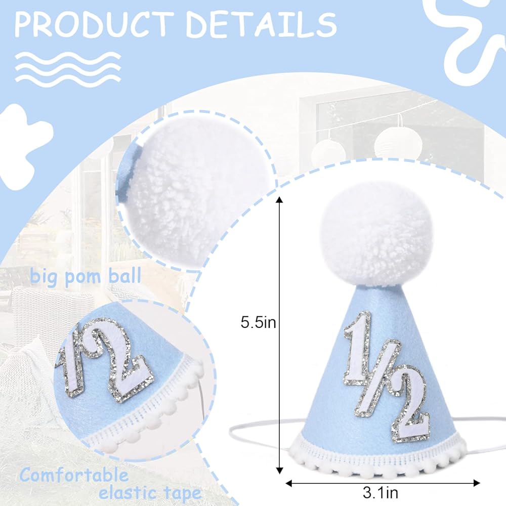 1/2 Birthday Hat - Introducing The Charming Boys 1/2 Party Hat, Designed To Sweeten Your Child's 1/2 Birthday And Set The Stage For A Fun And Memorable Celebration.