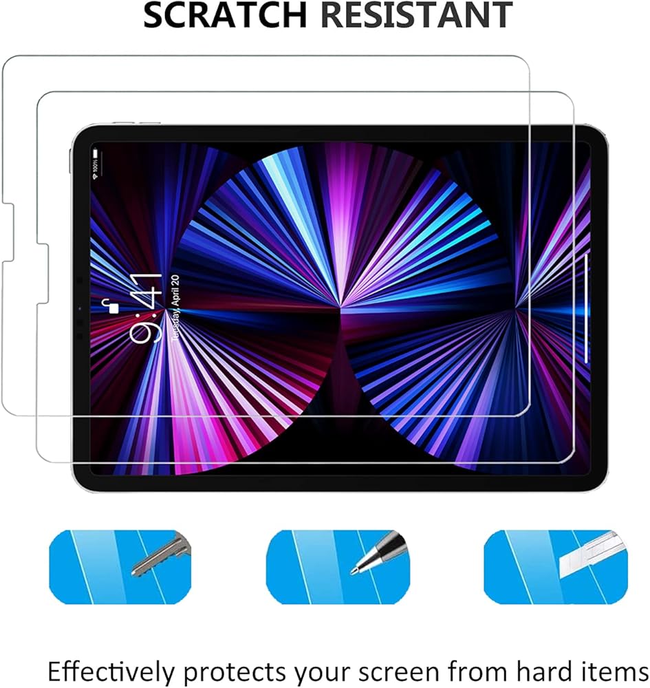 *Package includes* 2 pack of iPad Pro 11 inch screen protector,Guide sticker,Wet wipe,Micro fiber cloth.