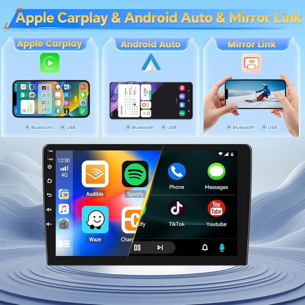 📢 Wired/Wireless Carplay & Android Auto: You can connect your smartphone to the radio replacement for Toyota Tacoma, allowing you to access your favorite apps, make calls, send messages, and stream music etc. Activate Siri or Goo-gle Assistant effortlessly using voice commands like "Hey Siri" or "Hey Goo-gle".