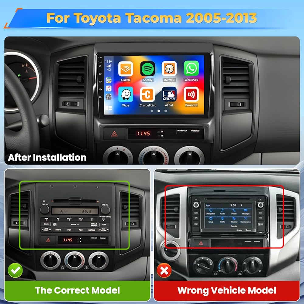 📢 Upgrade Android 13 Car Radio for Toyota Tacoma: This carplay radio equipped with a 9-inch 1080P HD screen providing a comfortable viewing experience. 1280*720 ultra-high resolution supports ultra clear video. It runs smoothly with the latest Android 13, Octa-core and 4GB RAM + 64GB ROM. Compatible with Toyota Tacoma 2005 2006 2007 2008 2009 2010 2011 2012 2013.