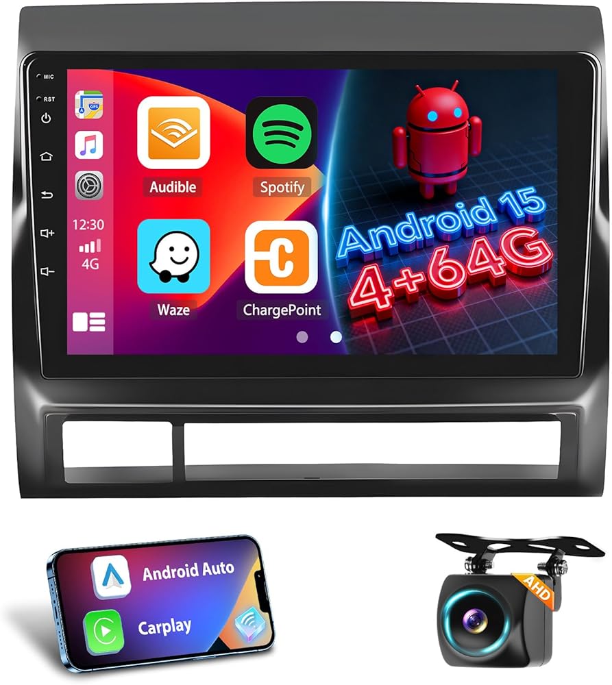 5Ghz WiFi 8Core 4G+64G Android 15 Radio for Toyota Tacoma 2005-2015 Car Stereo with Wireless Carplay Android Auto,5.0 Bluetooth,Build-in EQ,9inch IPS Touchscreen,GPS,FM/AM/RDS Backup Camera MIC