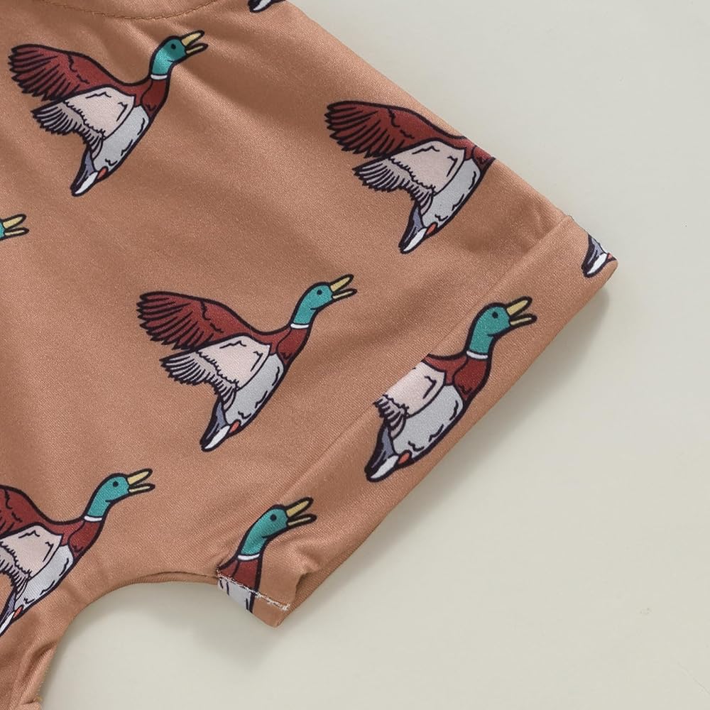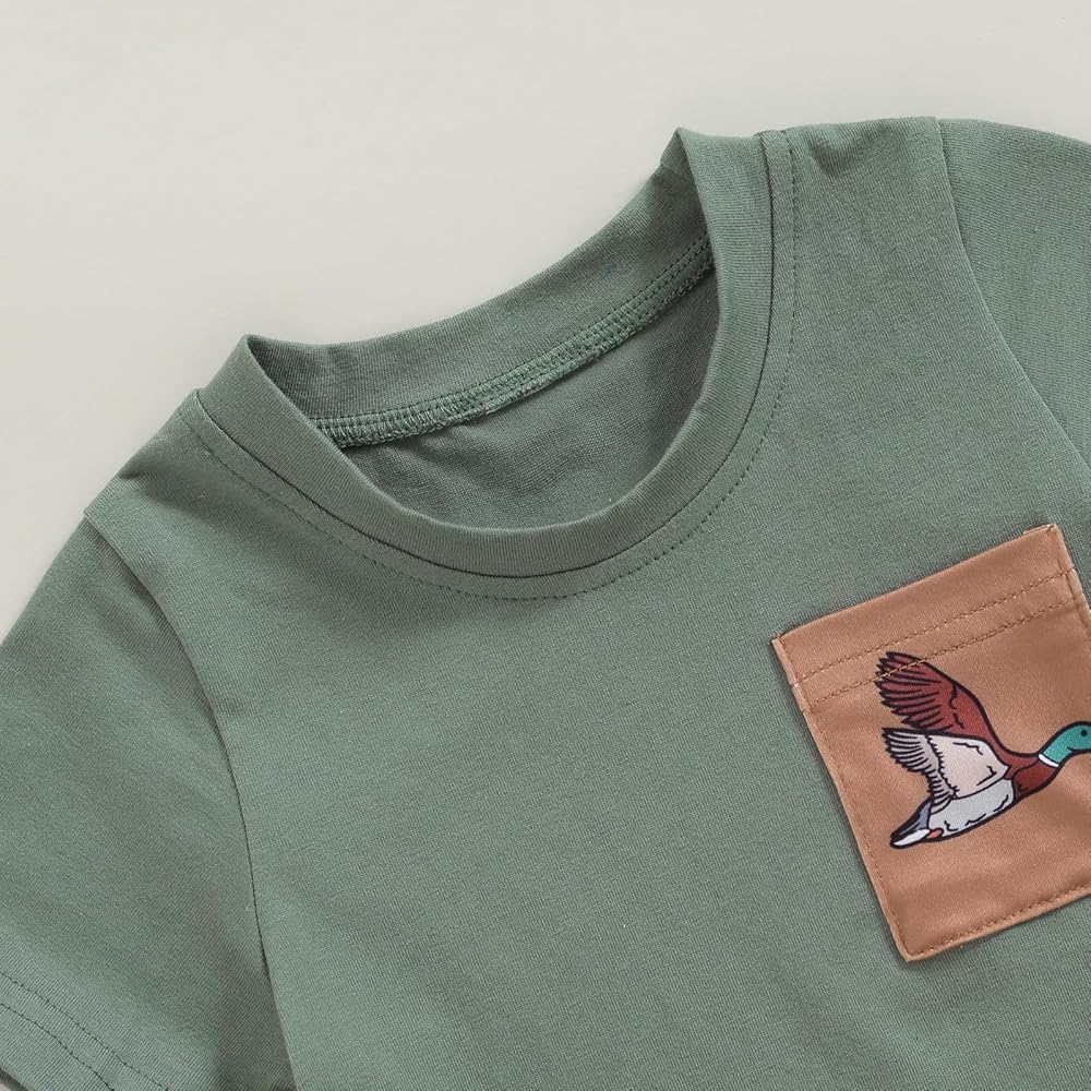 Toddler Baby Boy Hunting Outfit Mallard Duck Print Short Sleeve Pocket T-shirt Top Shorts Set Summer Clothes
