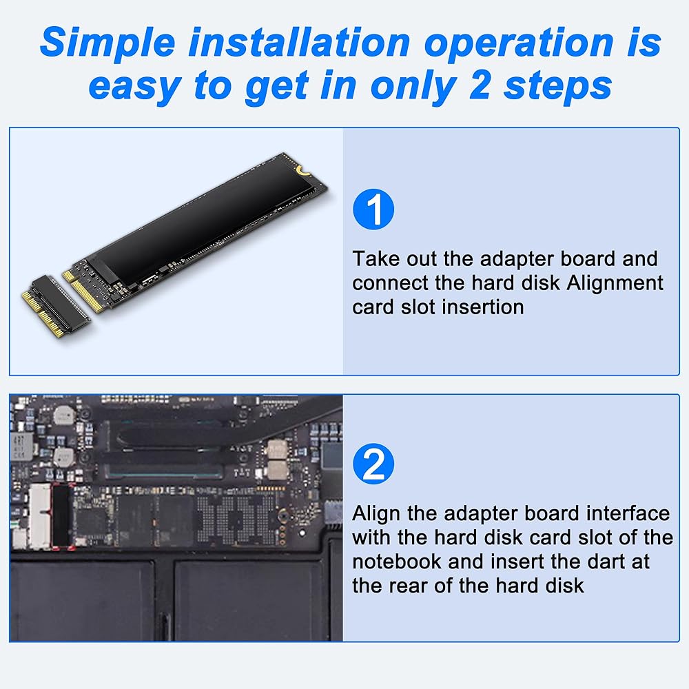Step 1, Remove the adapter plate and insert the hard disk against the bay. Step 2,Align the adapter plate connector with the hard disk bay of your laptop and insert it, lock the dowel at the end of the hard disk.