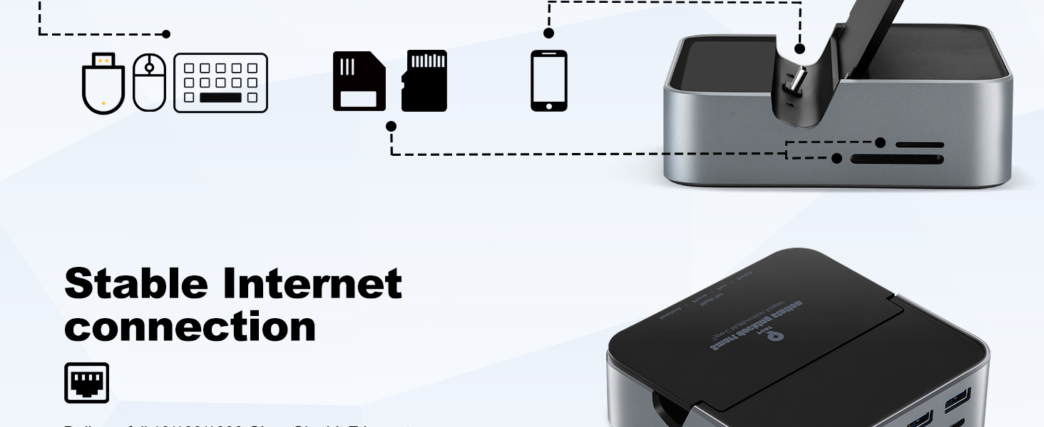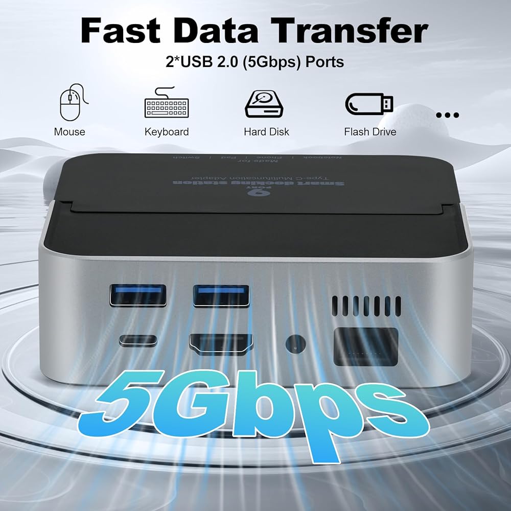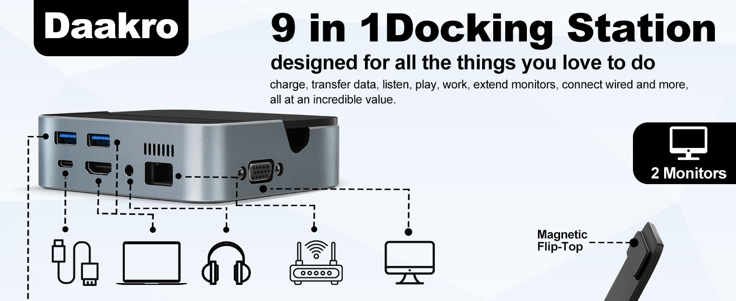[Fast Stable Data Transfer Docking Station]This Daakro docking station is equipped with 2 USB 3.0 ports with a transfer speed of up to 5Gbps, perfect for connecting other USB A devices such as keyboards, mice, USB flash drives, USB C hard disks, etc. Enjoy fast and efficient file transfers and media streaming with USB 3.0 technology, ensuring quick data transfer rates between your laptop and connected devices via the USB docking station.