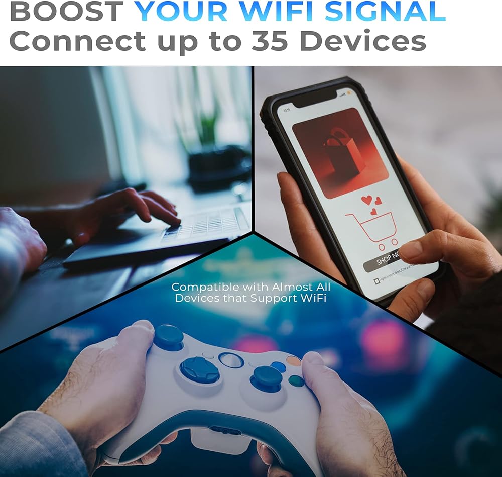 ELIMINATE WI-FI DEAD ZONES: WiFi extender boosts your wireless network covers up to 8500sq.ft and 45 devices with 4 high-gain antennas, which can fix the dead zone. Expand home wifi signal to outdoor garden.