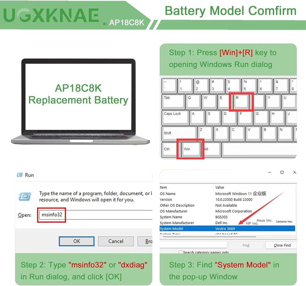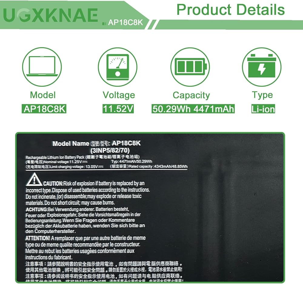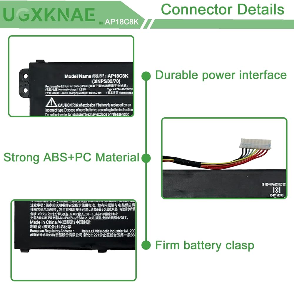 ✅ 【Security Information】Each battery has undergone stringent safety testing, such as CE,UL certification, and It's made from premium materials with built-in circuit protection for safety and stability. Offering exceptional performance with fast charging and low power consumption. The exterior packaging of the battery includes anti-static bags and foam cushioning, providing comprehensive protection for each unit. The UGXKNAE battery delivers a stable and secure power source for your laptop.