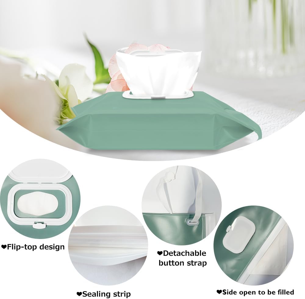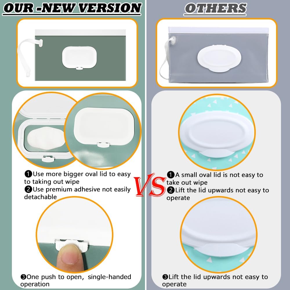 【New Version-Innovative Lid Mechanism】:Our Wet Wipe Pouches are different from the ordinary, these pouches feature a sophisticated press-to-open lid design, easily to open and close the lip. Effortlessly access your wipes while ensuring they stay moist and ready whenever you need them.