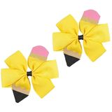 - Pencil Hair Clips Pin Yellow School Bow For Little Girls