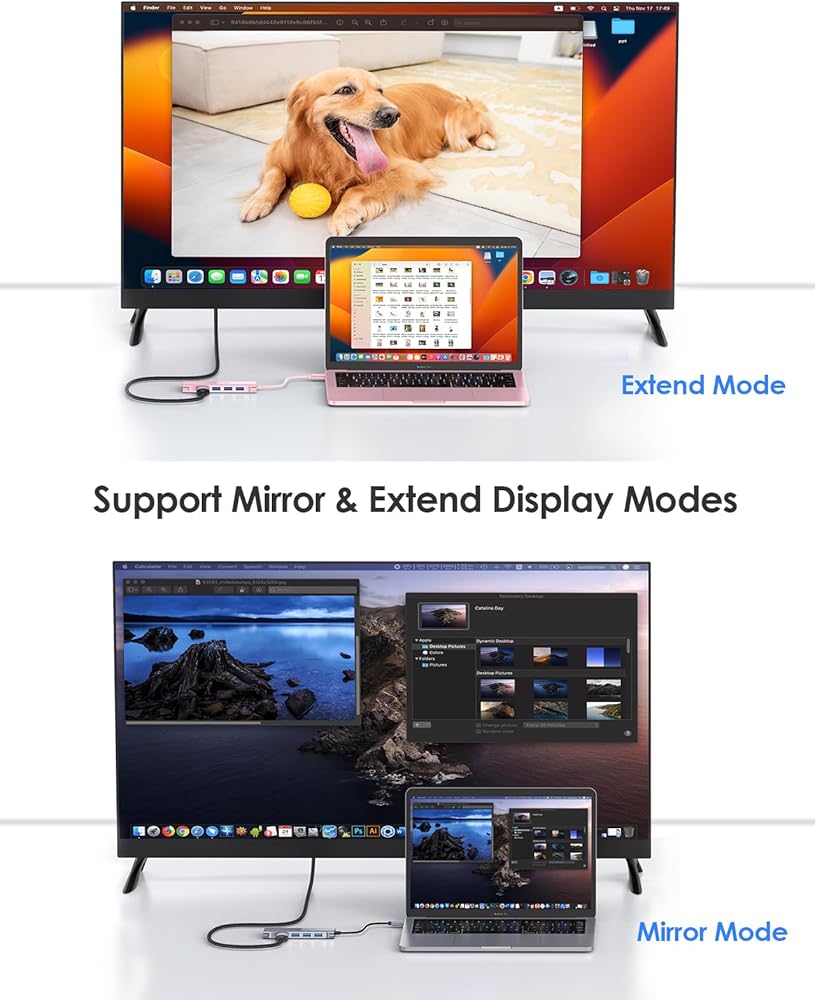Plug and Play - Broadly work with MacBook Pro 2016-2023 (13/14/15/16) & MacBook Air 2018 2019 2020 2021 2022 2023 (Not for previous-generation MacBook Air & Pro), MacBook 12, Surface Pro 7/Book 2/Go, Chromebook, Pixelbook, New iPad Pro/iPad Air 4, Steam Deck, and more full-functional type-c devices.
