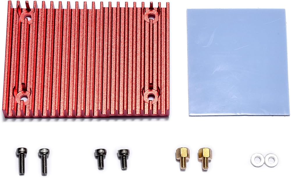 - Package Include: 1*heatsick; 1*thermal conductive silica gel sheet; 2*M2.5 x5 screws; 2*Hexagon pillars; 2*M2.5x8 Screws; 2 round pads