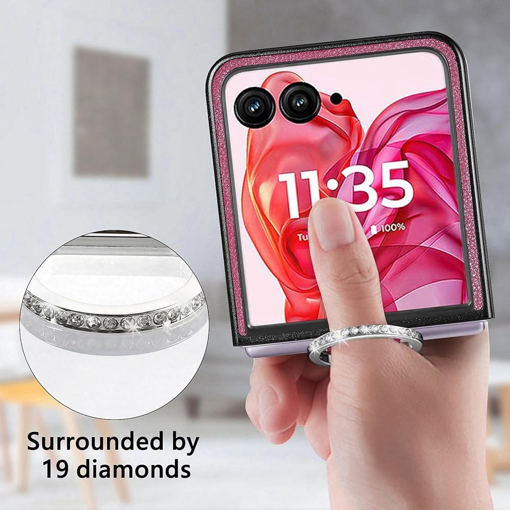 4.Bulid in Shiny Bling Ring Flip Cover For Motorola Razr 2024: which can hang some keys, accessories, etc. In addition, add style and security to the phone.The close-fitting tailoring fits your phone including cutouts for the buttons, camera and charging port.And it is equipped with a non-slip strip, so don't worry about the phone case falling off.