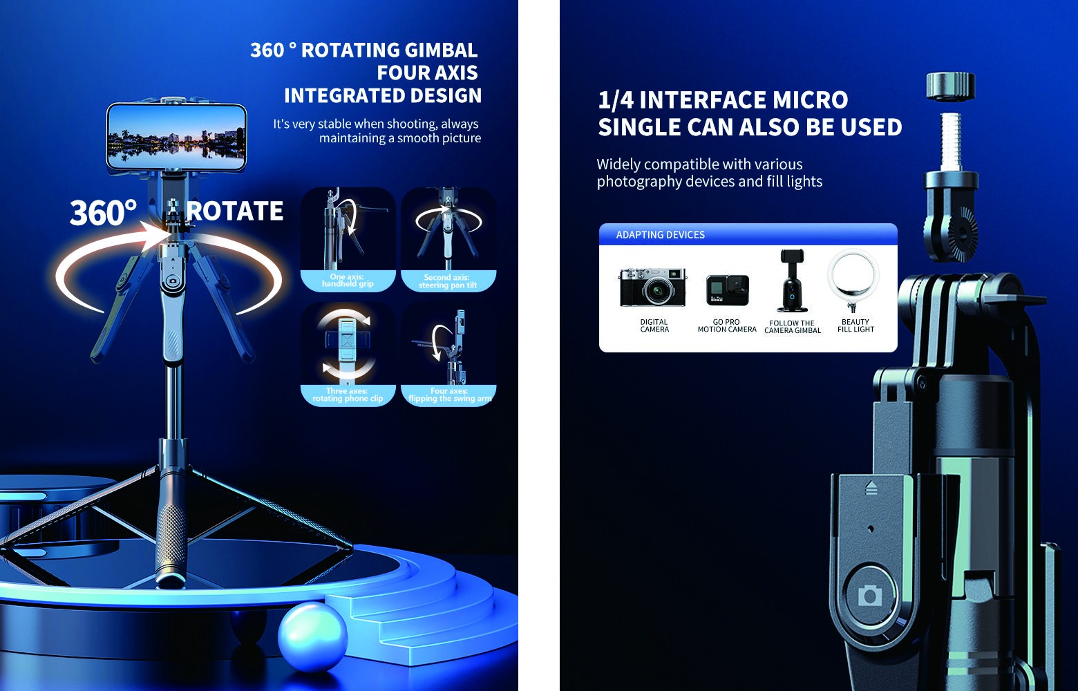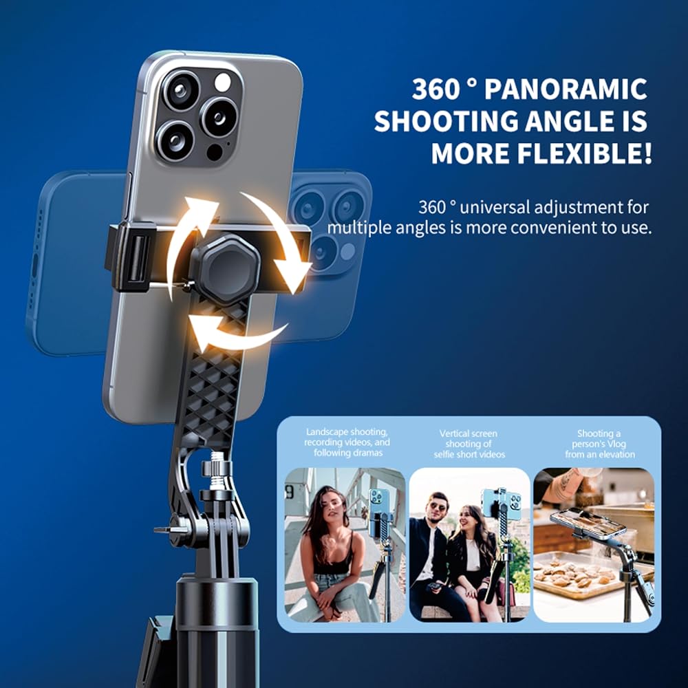 ROTATION: 360° Rotation Shooting Angle with a adjustment and 240° flip up and down, the phone holder enables swift customization of shooting angles, allowing you to effortlessly find the perfect perspective for your ideal shot.