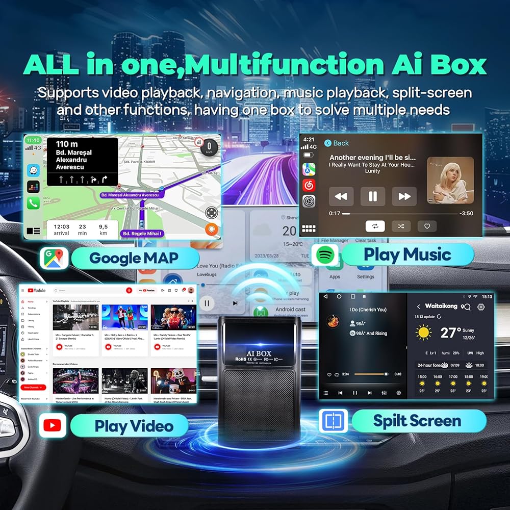 Magic Carplay AI Box Wireless Carplay Android Auto Adapter Qualcomm 8 Core Support YouTube Netflix Dual Bluetooth 5Ghz WiFi TF Card Streaming Device for Cars with OEM Wired CarPlay