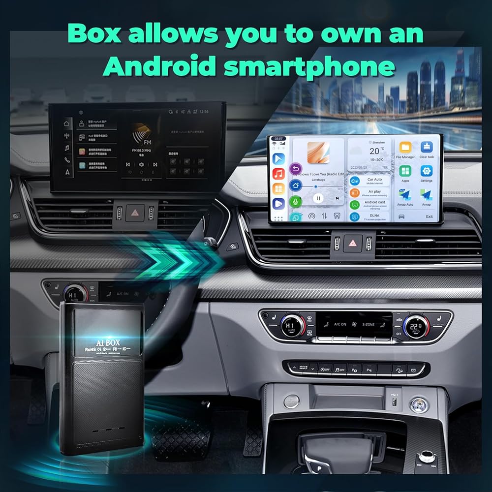 【Applicable car models】: fits car models from 2016 + with OEM wired carplay and touch screen radio. plug and play, easy to use on your center console seamlessly. This Aibox won't install and work normally if your car only have wireless carplay function or wired android auto function, it only fit for cars with OEM wired carplay function. Spport the mobile phone that connected to our aibox with IOS10+ or android 11+ operation system.