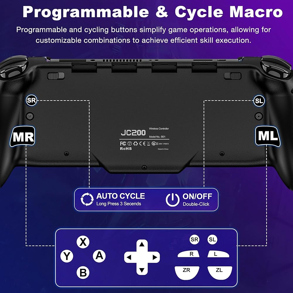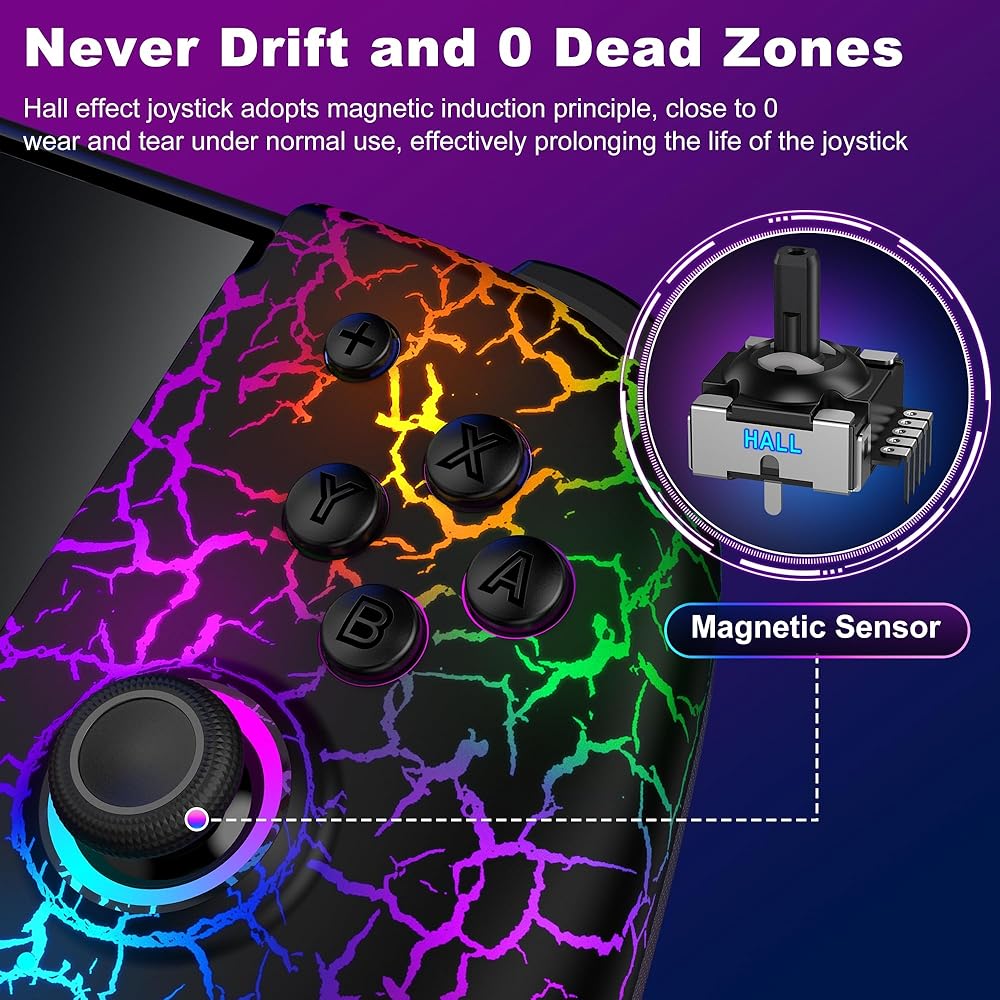 Hall Sense Joystick and Programming Function:General controller joysticks may have slow response, drift.We have innovatively upgraded the Hall joystick based on electromagnetic induction, so that you can control your character more accurately and smoothly in the game.And our switch pro controller also has a programming function, which you can use to simplify game actions.This not only helps you win quickly, but also reduces the frequency of button use and increases the life of the controller.