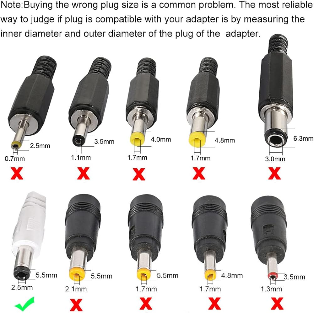 2.5mm/5.5mm DC Male Power Connectors.