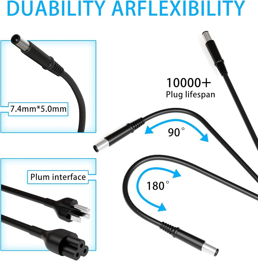 65W 19.5V 3.34A Laptop Charger Compatible with Dell Latitude 5400 5480 5590 5500 5490 5580 7280 7290 7480 7490 E5470 E5440 E6420 E6430 E6440 E6540 E7450 E7440 E7250 LA65NM130 AC Power Adapter