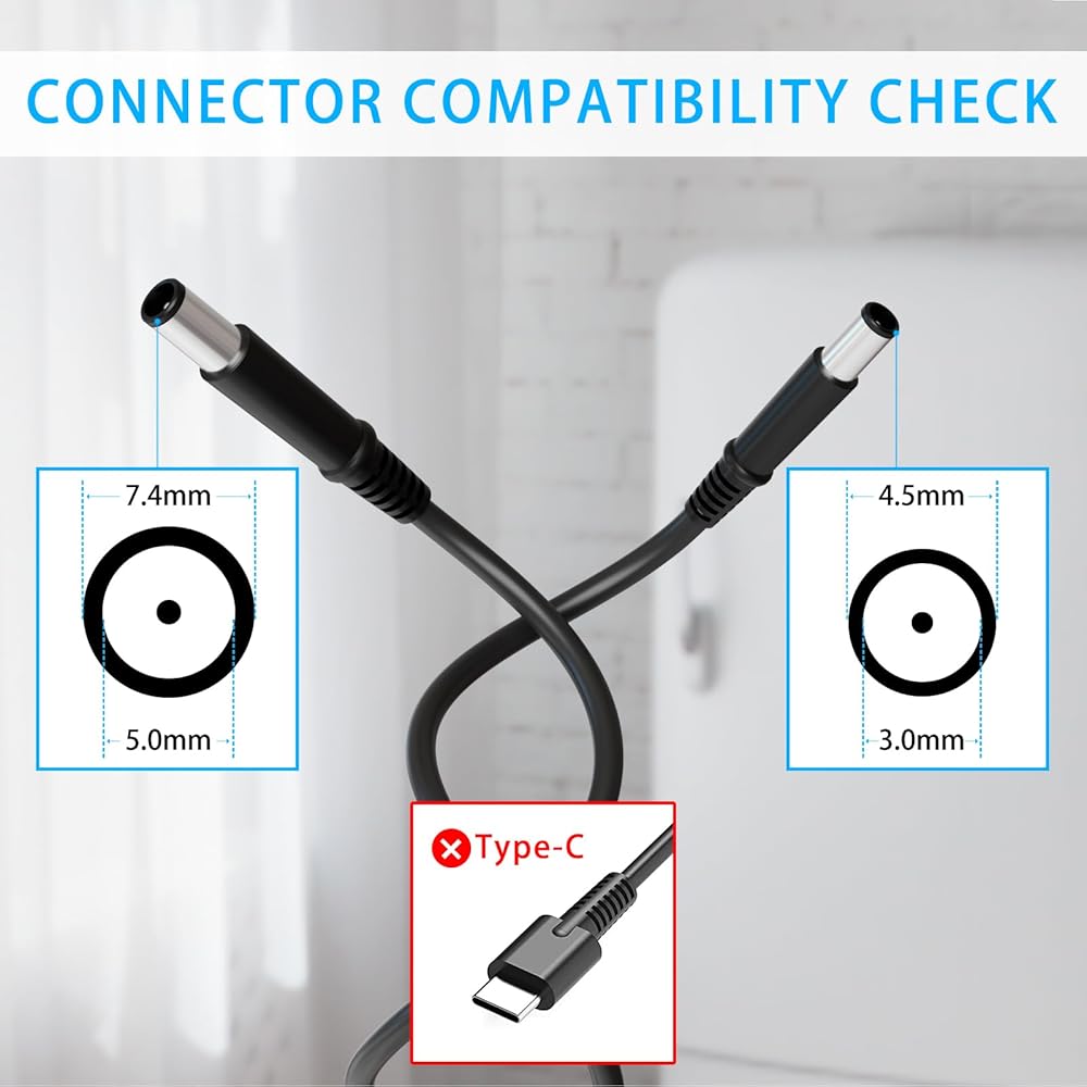 Power specification: Input: 100-240V 50-60Hz; Output: 19.5V 3.34A 65W (compatible with 19.5V 2.31A 45W); Connector size: 4.5*3.0mm.