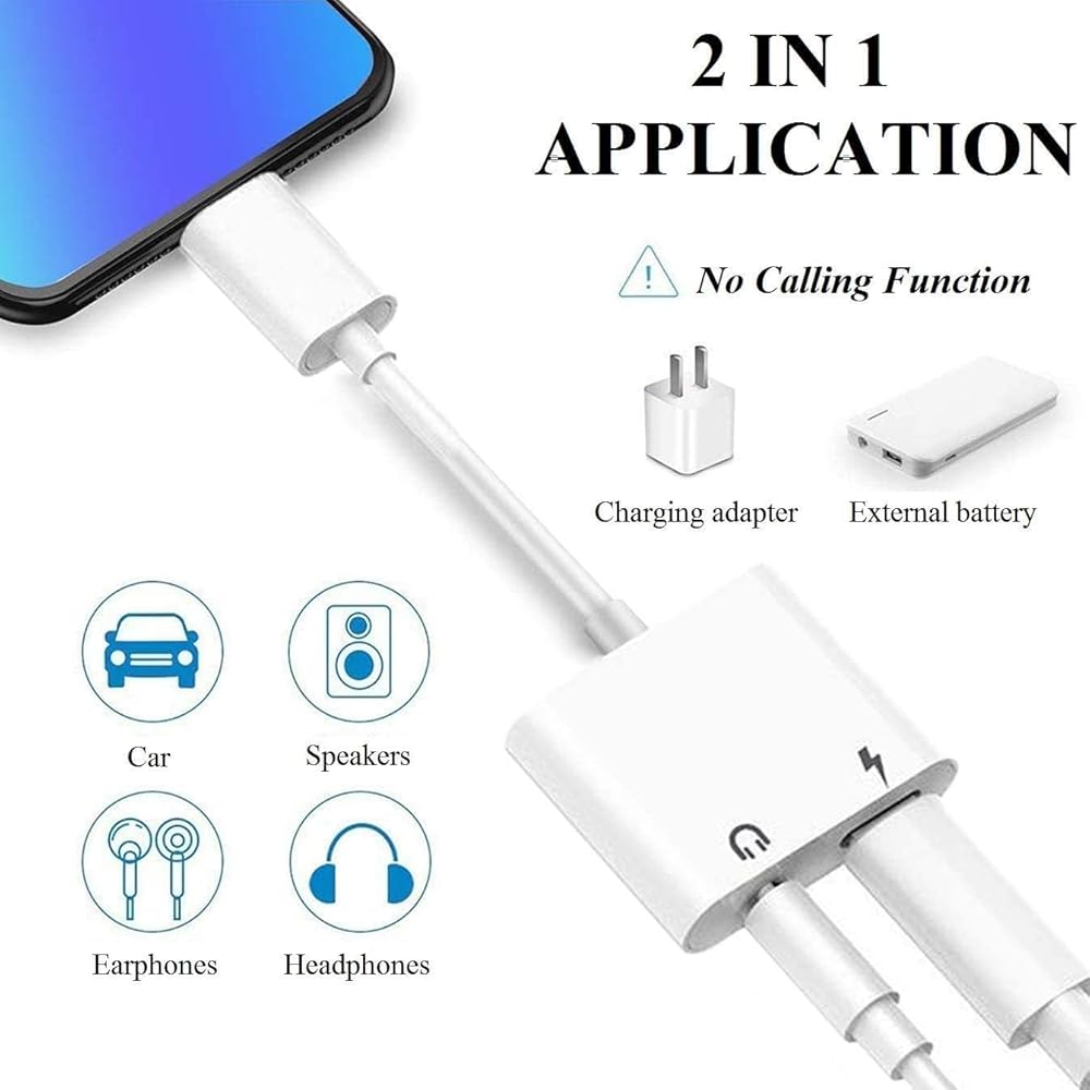 2-in-1 headphone adapter is an excellent choice. Because the Lightning to 3.5 mm headphone adapter utilizes 24bit 48kHz lossless output technology to ensure sound transmission stability and fidelity, allowing you to enjoy high-quality music. Please note that this adapter does not support phone call function.