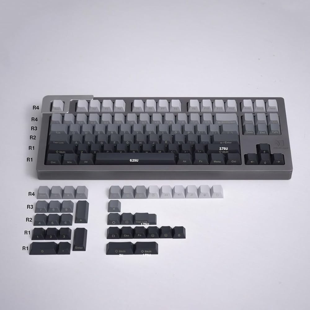 [125 Keys Grey Gradient Keycaps] 125 Keys suitable for 61/64/84/87/104/108 layout keyboard. With its unique gradient design, these keycaps will surely add a touch of elegance to your keyboard setup.