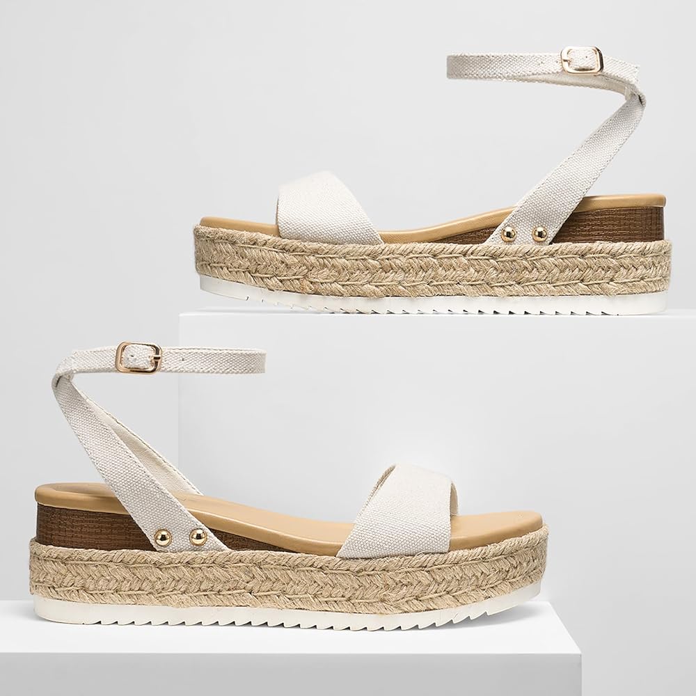 [Fashion Platform Wedge]: Add a splash of sunshine to your ensemble with the ZURIN espadrille platform wedges. Elevate your look effortlessly with the trendy flatform sandals, featuring a stylish stacked wooden heel and a cute platform. The secure ankle strap with a buckle closure ensures a snug fit, making these boho sandals for women both a stylish and comfy pick that's sure to be a treat for your feet.