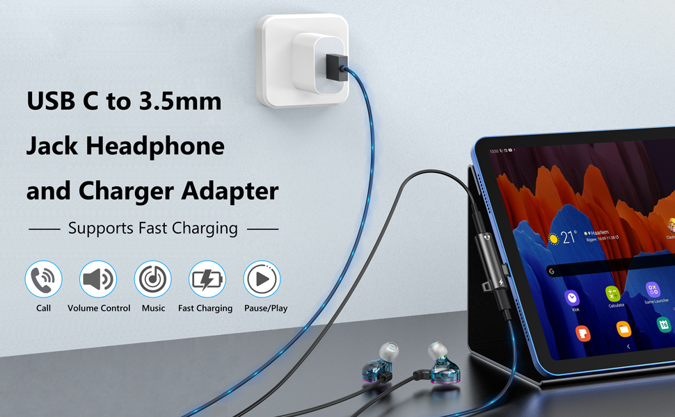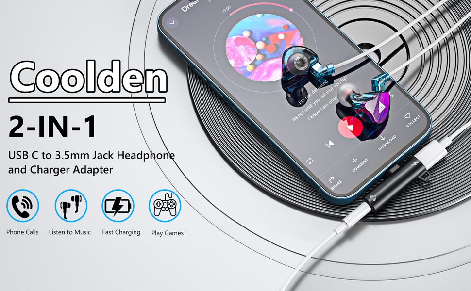 【2-IN-1】This USB C headphone adapter and charger is a 2-in-1 device that functions as both a headphone adapter and a charger. Coolden USB C to 3.5mm jack adapter not only supports microphone, but also supports inline control. No limitation of using volume control, voice call, contact making, remote control via function buttons on headphones.