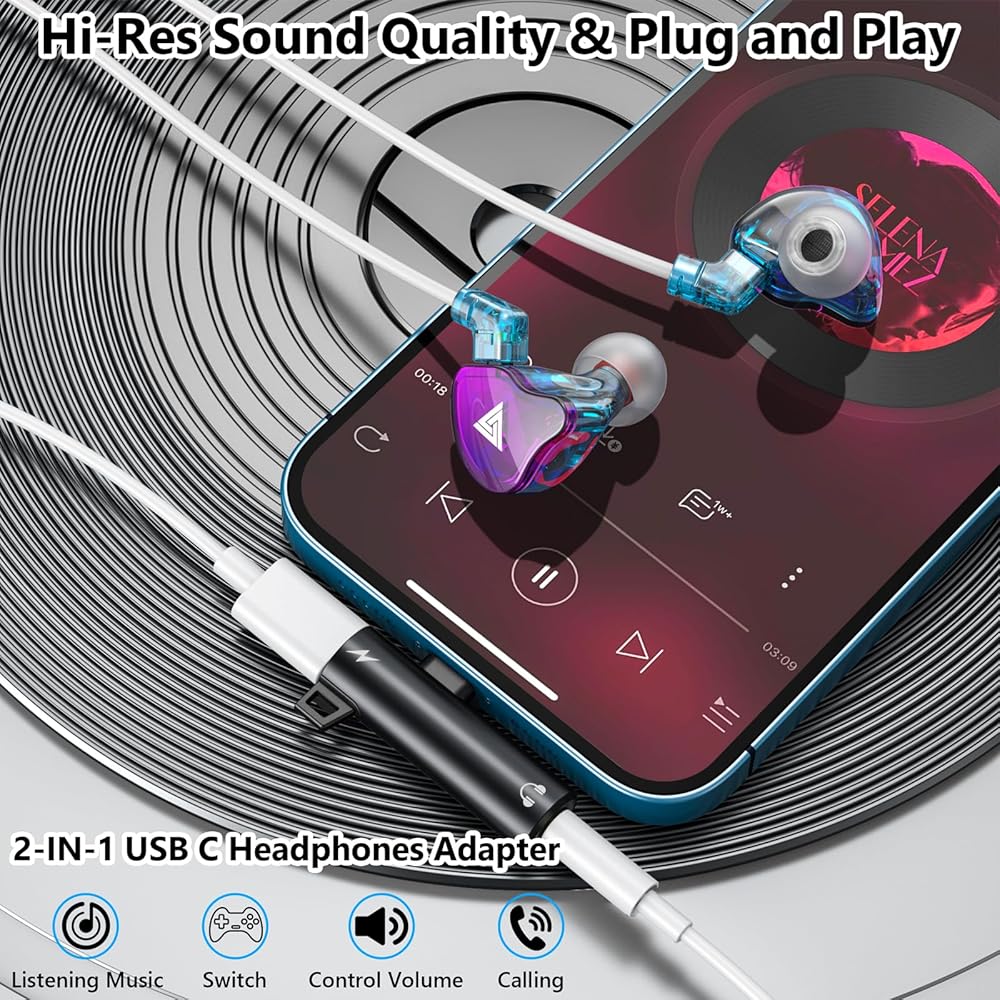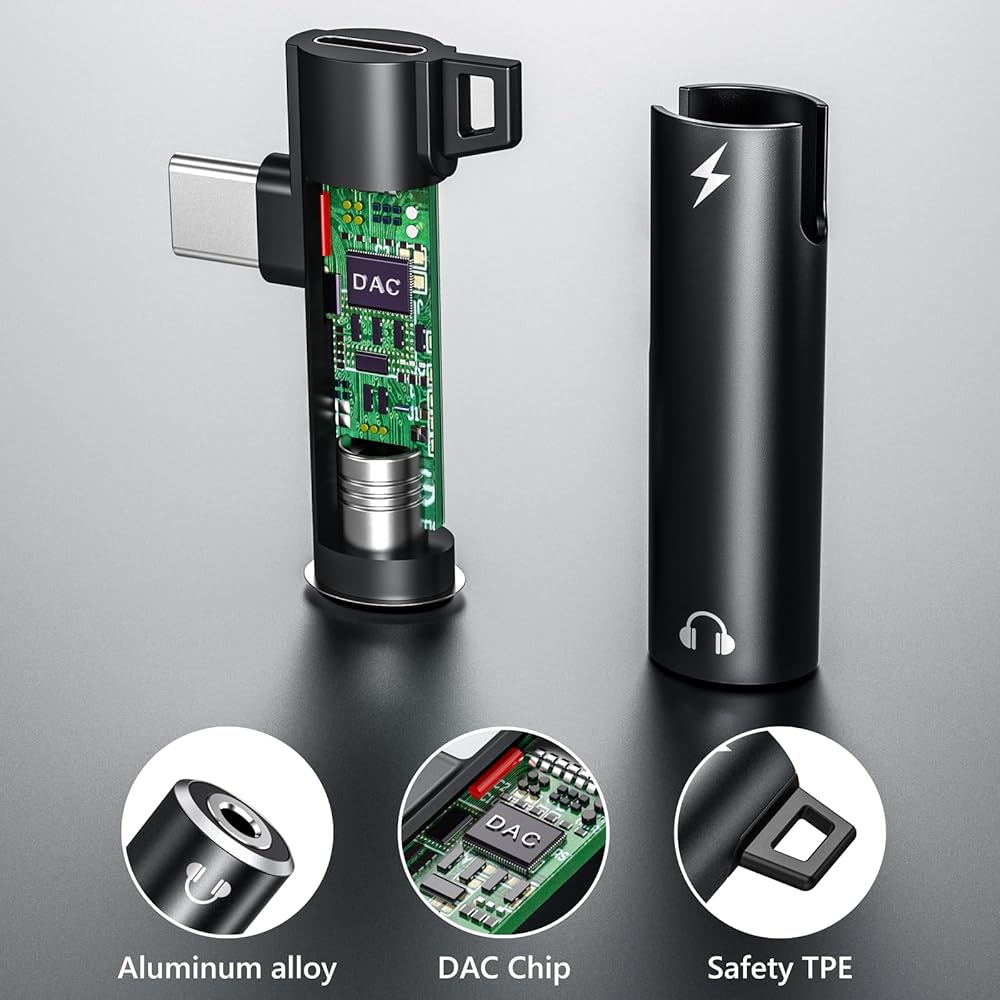 【Hi-Fi Sound Quality USB C Headphone Adapter】The aux to usb c has a built-in advanced DAC chip that reduces power interference and effectively eliminates noise. USB C dongle supports up to 24Bit/96Khz audio sampling rate, simply plug in the USB C Aux adapter and enjoy pure Hi-Fi sound quality by using the function buttons on the headset for voice calls, volume control and pause.