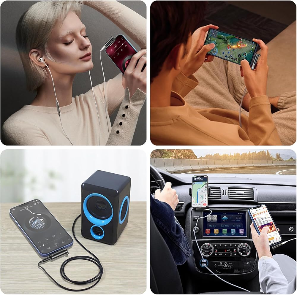 【Right Angled Design】90° angle USB C jack adapter. The 3.5mm to usb c uses a right-angled design and is ideal for use in landscape mode on your device. For example, to play games and watch movies. You can place the phone horizontally or vertically and the jack plug is not in the way.