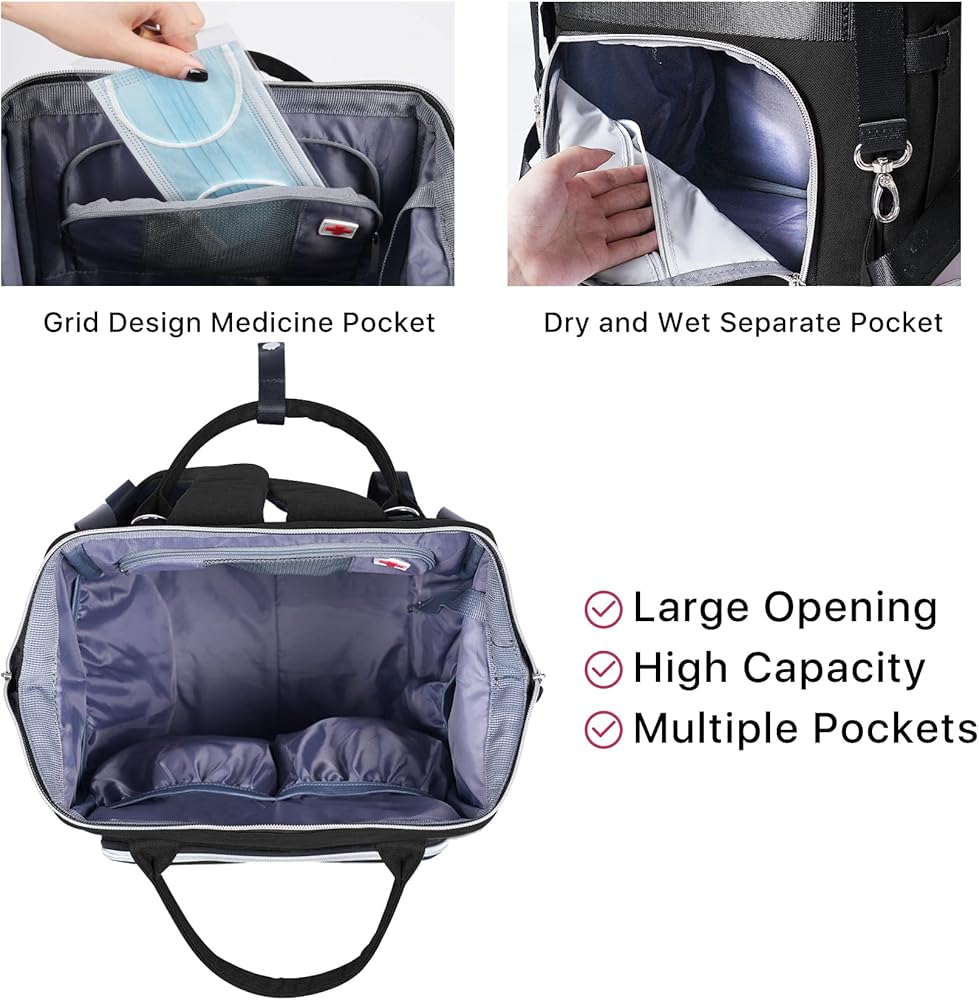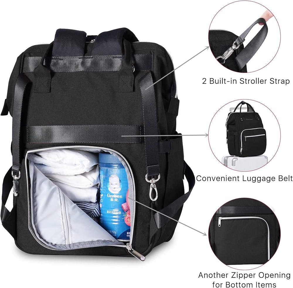Baby Diaper Bag Backpack, Multi-Function Waterproof Travel Back pack Nappy Bags for Women Baby include Insulated Pocket, Changing Pad, Stroller Straps and Elastic Luggage Strap for Travel Black