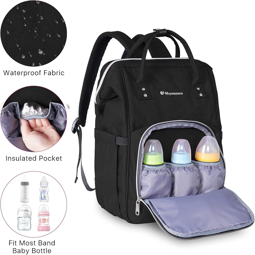 🍼【Extra Large Capacity with 13 Pockets】The functional diaper bag backpack is stocked with 3 insulated feeding Bottle Pockets, 2 side pocket for travel baby wipes/tissue and water bottle, 1 main double zipped closure compartment, 6 interior pockets for medications or wet cloth or other baby essentials, 1 easy-access front pocket can hold cell phones and wallets. The scientific compartment is convenient for us to use when we go out.