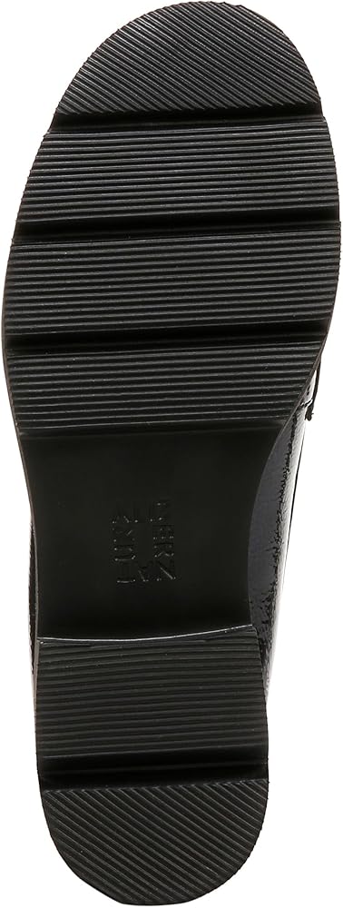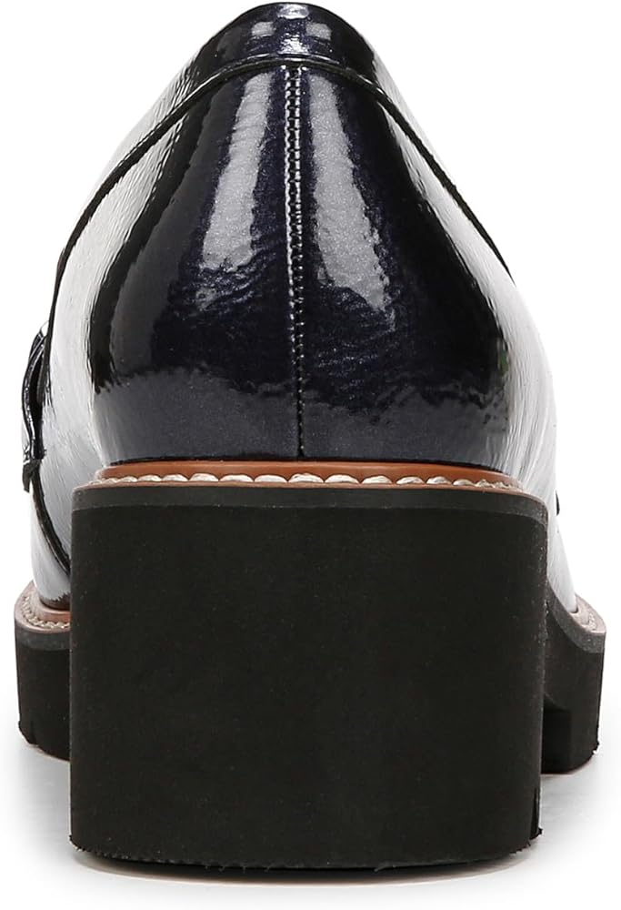 Synthetic upper with a closed round toe lug sole loafers for women available in medium and wide width