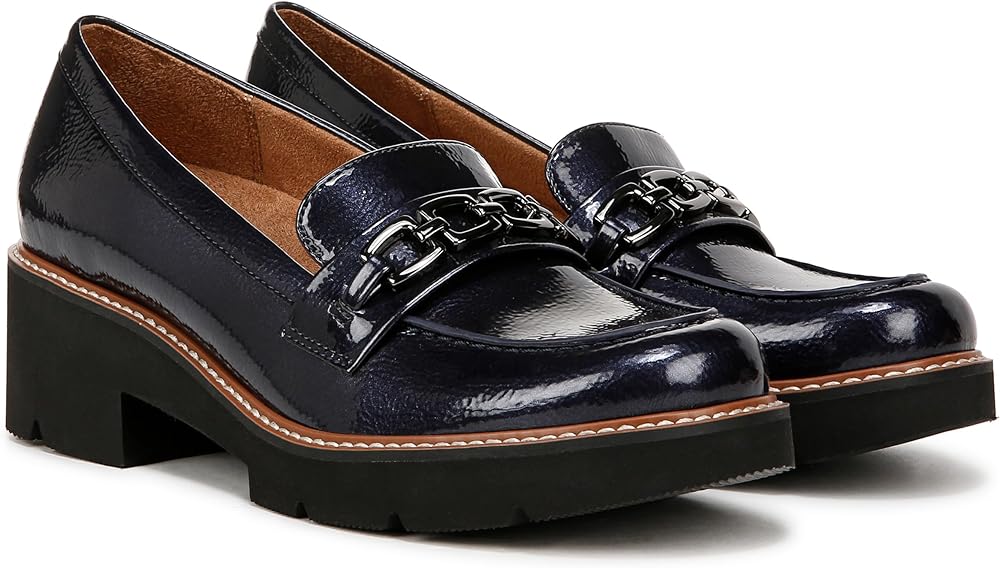 Loafers from our Lite Series // Lightweight details, a lug sole and chain-link ornamentation give you that cool + comfortable look you've been wanting. Elevated lug sole loafer with metallic chain-link ornamentation. Synthetic upper with a closed round toe. Contour+ Comfort technology for a premium fit and all-day comfort experience. Flexible and lightweight EVA sole. 3/4 inch platform, 2 1/4 inch heel. Consciously packaged: 100% of our shoe boxes are made of 80% recycled paper + soy-based ink. Linings, insole and heel counter crafted from partially recycled materials. WHY YOU'LL LOVE IT: Forever elegant silhouettes with all day wearability, available in an inclusive range of sizes and widths. Designed to the contours of a woman's foot. The Beautiful Fit. Since 1927.
