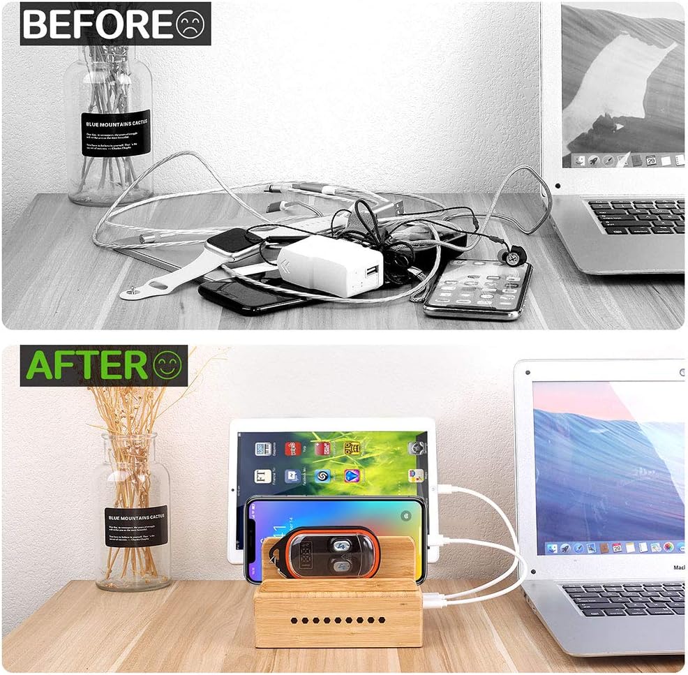 SUPERIOR QUALITY BAMBOO MATERIAL: The USB charging station is made of 100% natural high-quality bamboo material with unique & elegant appearance and durable construction design.