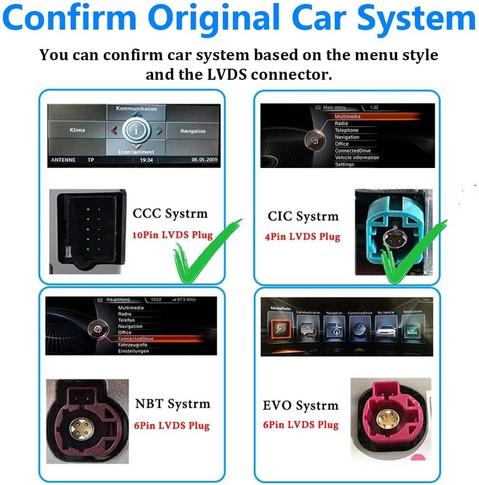 【Pre-shopping Notes】This car touchscreen is suitable for BMW CCC/CIC system. It is not compatible with other systems. It's designed for BMW 3/5/6 Series E90/E91/E92/E93/E60/E61/E63/E64 (2003-2008). Confirm the system and see the model number to buy!!! If you are unsure, you can check out our pictures, still can't confirm inquire with us via Amazon email.