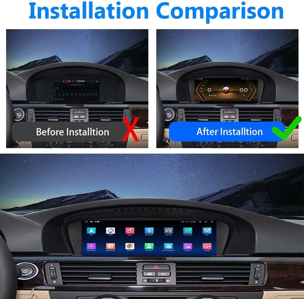【Supports Original Functions】The upgraded car touch screen retains all original functions. Original Functions: original car radio, iDrive system, original reversing camera, SWC function and more. It supports the use of original rearview cameras 360 rearview cameras or aftermarket rearview cameras and is compatible with DVR systems.