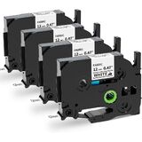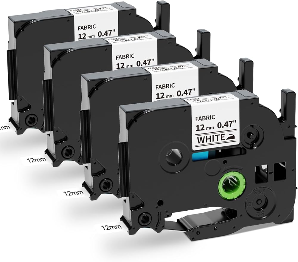 [Parcel] 4 packs compatible with Brother Iron on cloth labels tze-fa231. Color: black print on white Iron-On Fabric tape. Size: 1/2 inch wide x 9.8 feet long (12mm x 3m) each tape.