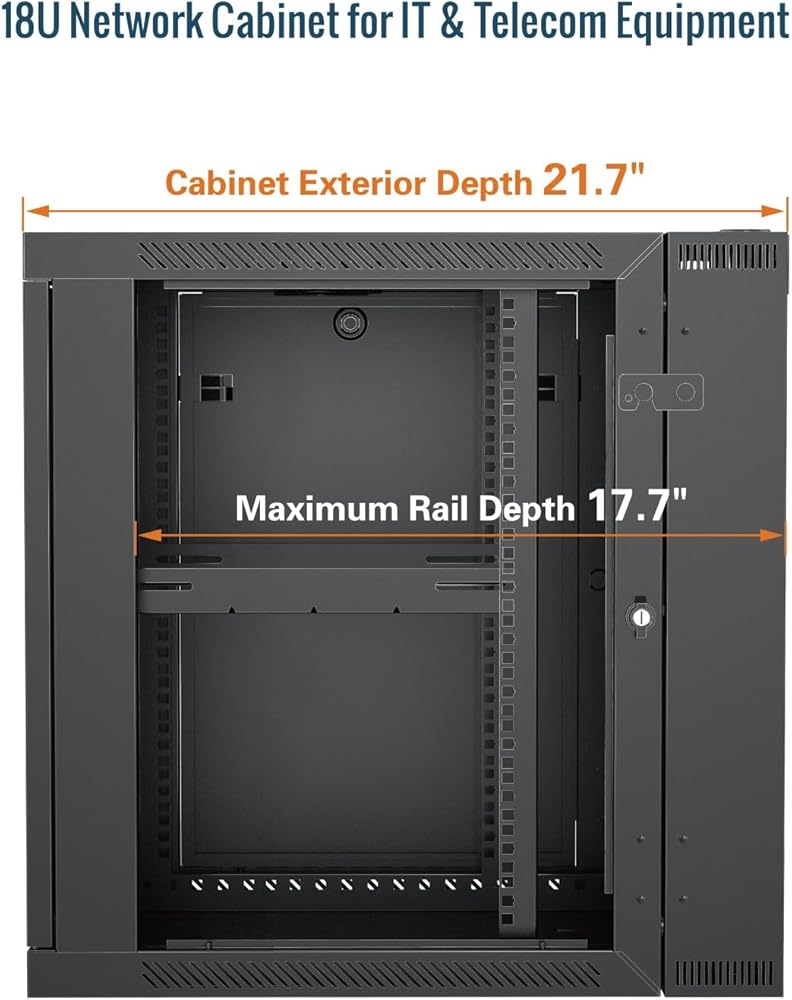 【Various Choices】: Available in 6U, 9U, 12U, 15U, 18U; Wall Mount Rack with doors made of two materials-glass /mesh; Different depth-17.7in/23.6in