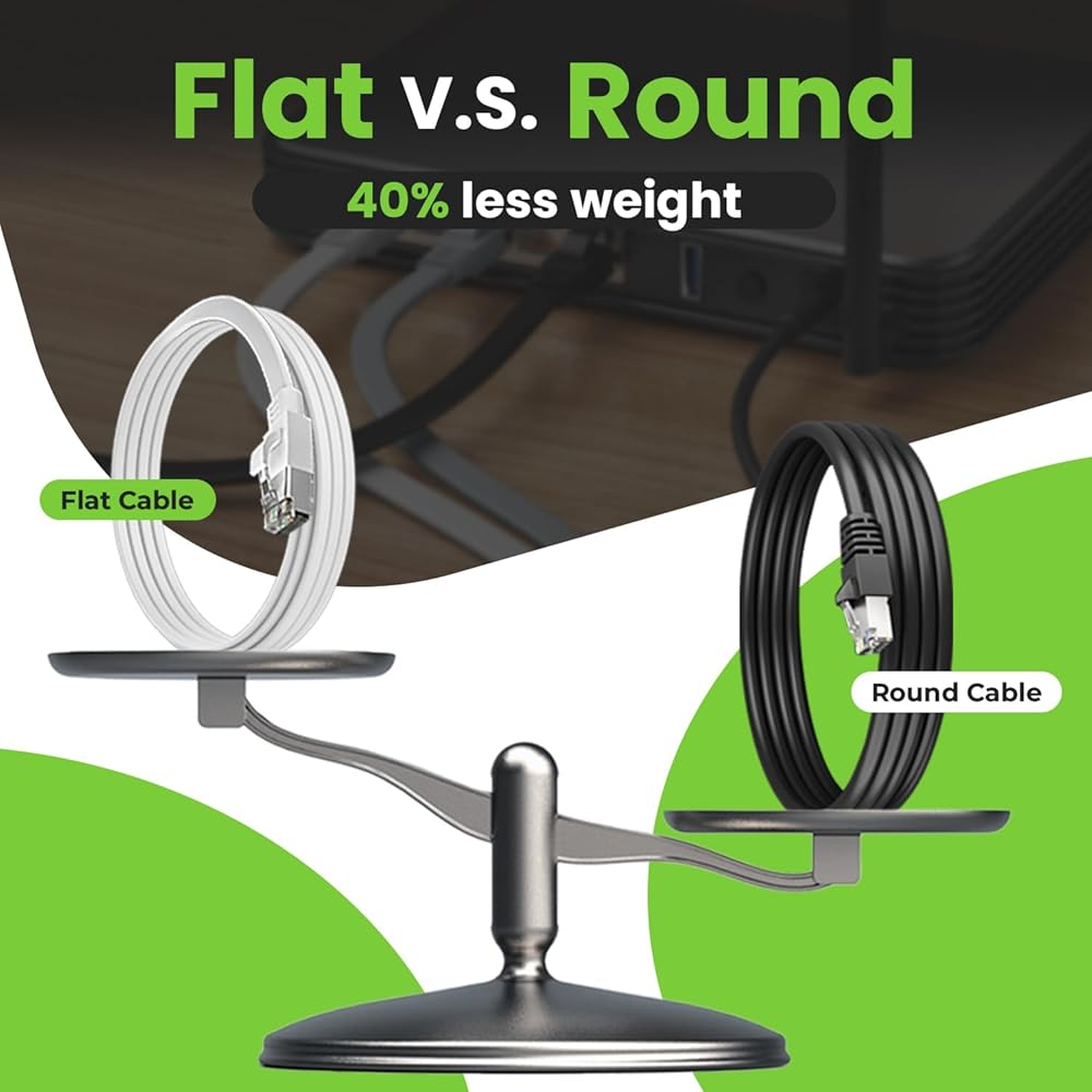 Space-Saving & Flexible - Our FLAT RJ45 cable is tailored for high-density environments, offering the flexibility and space-saving benefits of a flat cord design. Perfect for discreet installations, it effortlessly runs along walls, edges, corners, and underneath rugs or carpets for seamless concealment. Say goodbye to kinks and tangled cords with this versatile solution.
