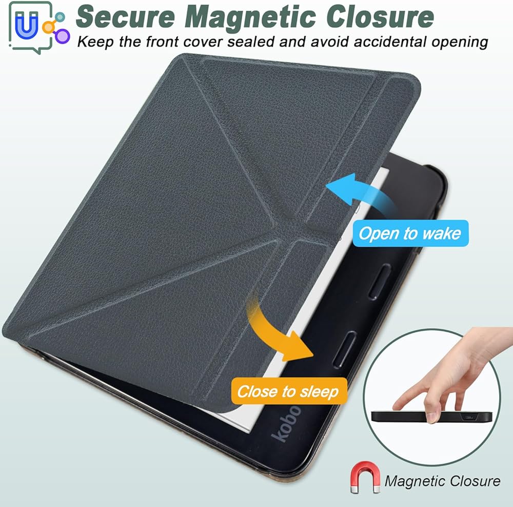 Auto Wake/Sleep Function: The build-in magnetic strip automatically wakes or puts your e-reader to sleep when you open and close the flap. The magnetic closure clasp of the Kobo Libra Colour is strong enough to keep it securely closed and staying in place, easy to snap on and off.