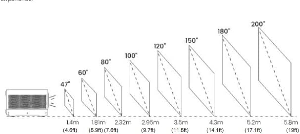 【Cinematic Large Screen】The CASIRIS H6, with a projection ratio of 0.25:1, can achieve a maximum screen size of 150 inches, providing you with a cinematic viewing experience.